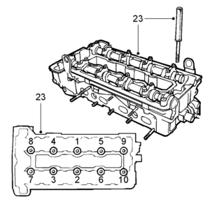 Tighten the cylinder head bolts in three stages: