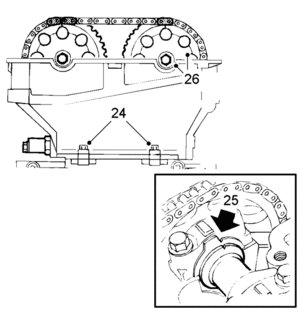 26. Fit the camshaft sprockets and chain. Start with the camshaft on the inlet side.
