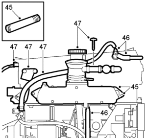 46. Refit the intake manifold steady bar and connect the crankcase breather nipple.
