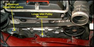 After the short belt conversion, using the Saab oem upper idler pulley, lower idler pulley bypassed, using Michel Briand's web site with instructions and pics: Short Belt Mod This is not a complete fix, because the remaining upper idler is still the one most likely to fail.