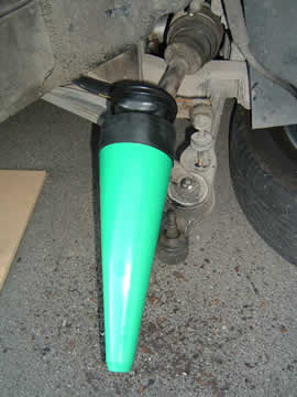 The cone was placed over the CV joint and the boot was pushed off the end of the cone...