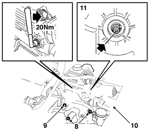 11. Remove the cap on the CA unit and check that the CA unit's worm gear is in the engaged position (position E). If it is not, rotate it to the engaged position using a torque wrench set for 20 Nm.
