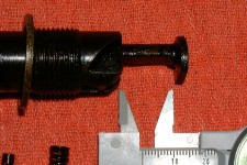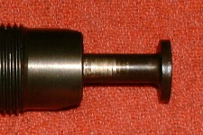 After a little cleaning with a rag and a brush, marks can be seen on the back of the shaft, showing how the tensioner took up the slack as the timing chain stretched. 10-11 marks are visible, so the tensioner started at 7-8 mm and slowly extended to 18 mm over the life of the engine, before it could no longer keep the chain tight.