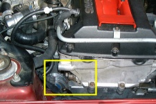 The timing chain tensioner is located on the passenger side of the engine. The airbox, serpentine belt and upper idler pulley were removed to get good access with the tools on hand, and to see better. Removing the tensioner with all other parts in place is possible, but more difficult.